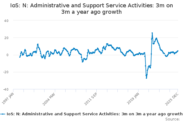 Download this time seriesIoS: N: Administrative and Support Service Activities: 3m on 3m a year ago growth