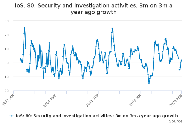 Download this time seriesIoS: 80: Security and investigation activities: 3m on 3m a year ago growth