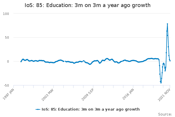 Download this time seriesIoS: 85: Education: 3m on 3m a year ago growth