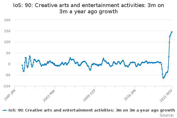 Download this time seriesIoS: 90: Creative arts and entertainment activities: 3m on 3m a year ago growth