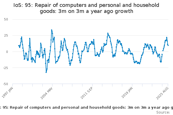 Download this time seriesIoS: 95: Repair of computers and personal and household goods: 3m on 3m a year ago growth