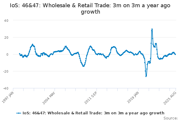 Download this time seriesIoS: 46&47: Wholesale & Retail Trade: 3m on 3m a year ago growth