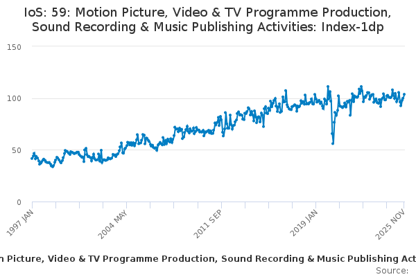 Download this time seriesIoS: 59: Motion Picture, Video & TV Programme Production, Sound Recording & Music Publishing Activities: Index-1dp