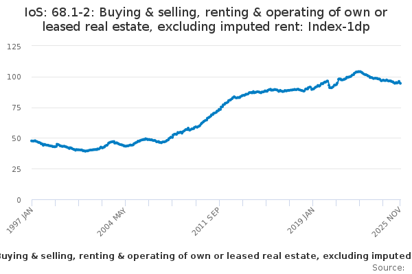 Download this time seriesIoS: 68.1-2: Buying & selling, renting & operating of own or leased real estate, excluding imputed rent: Index-1dp