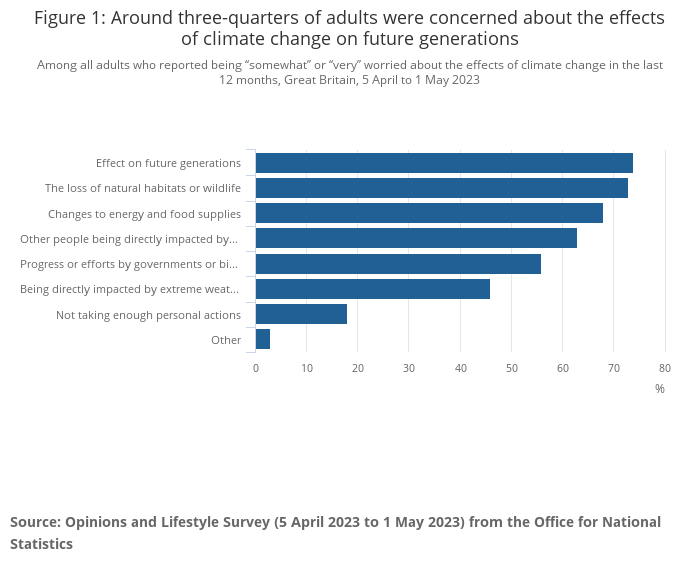 Figure 1: Around three-quarters of adults were concerned about the effects of climate change on future generations