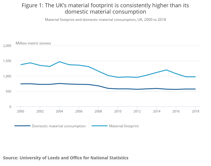 Material footprint and domestic material consumption, UK, 2000 to 2018
