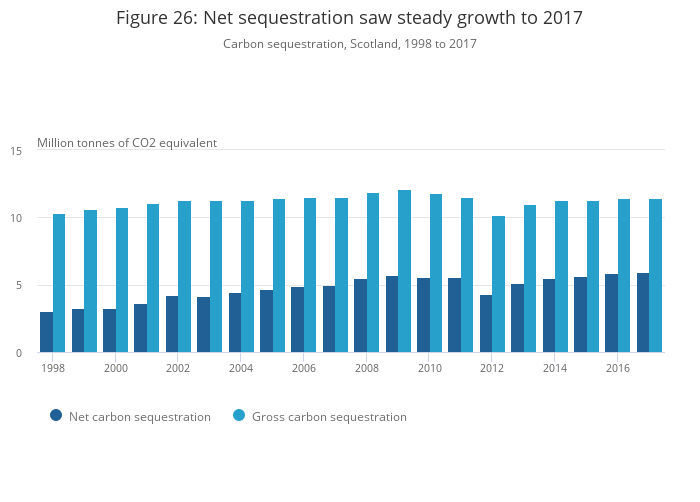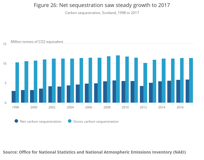 In 2017, Scotland represented 39% of UK net carbon sequestration.