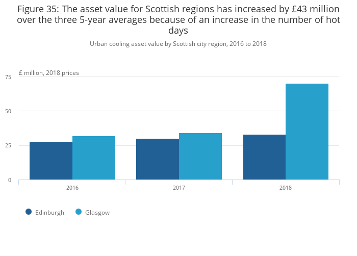 Because of the cooling effects of urban green spaces, Edinburgh and Glasgow avoided £3.15 million in productivity losses during 2018.