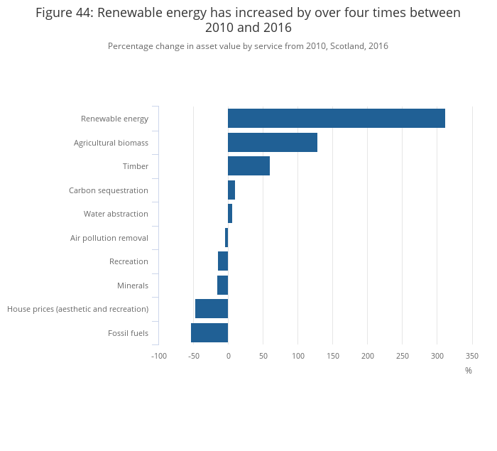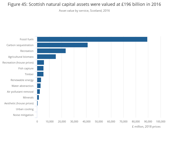 In 2016, the partial asset value of Scottish natural capital was £196 billion, 20% of the UK asset valuation.