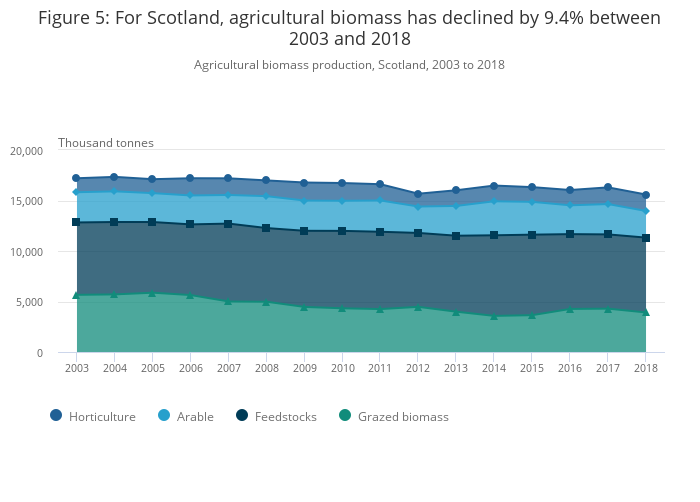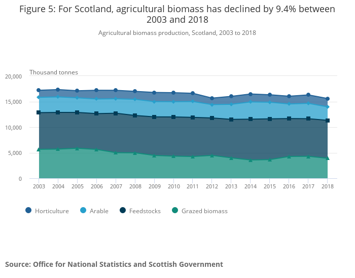 Figure 5: For Scotland, agricultural biomass has declined by 9.4% between 2003 and 2018