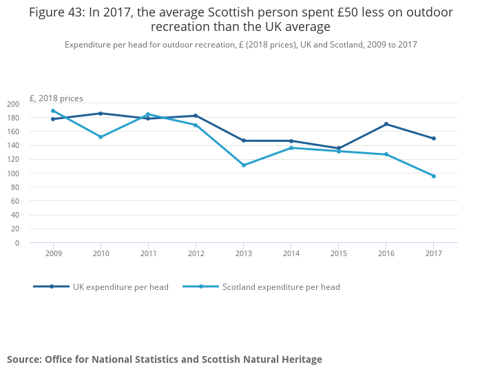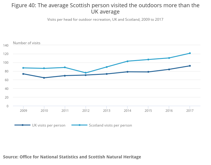 During 2017, over 1 billion hours were spent on visits for outdoor recreation in Scotland.