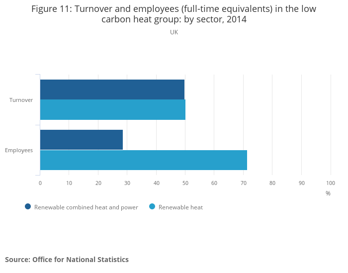Download this chart Figure 11: Turnover and employees (full-time equivalents) in the low carbon heat group: by sector, 2014