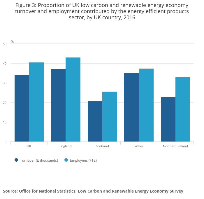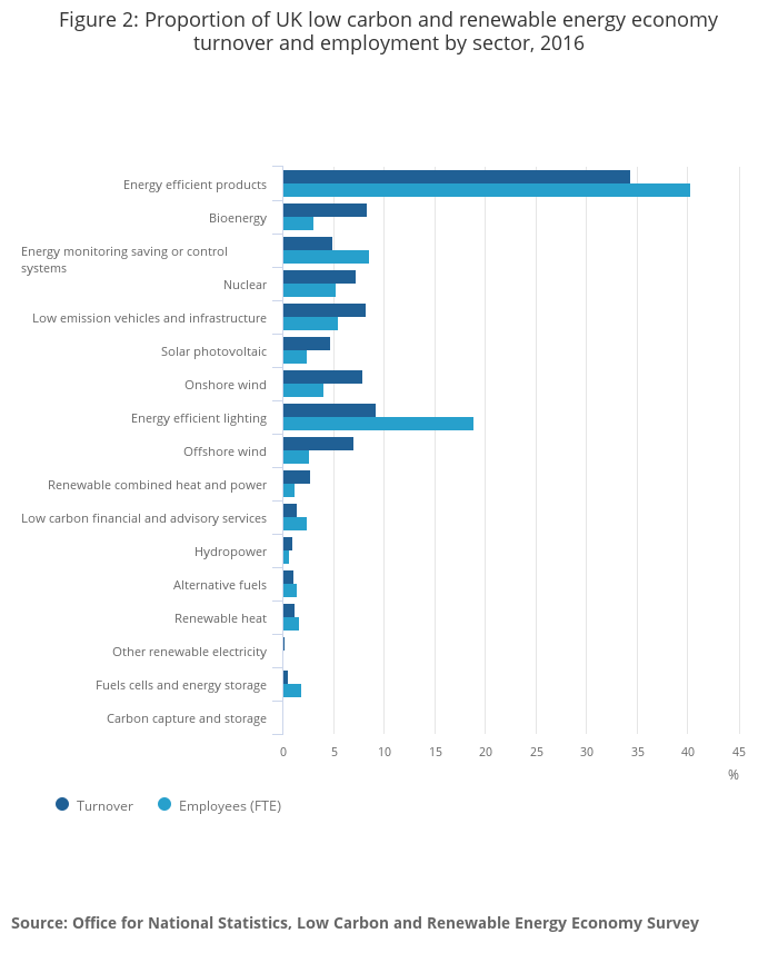 - The energy efficient products sector was the biggest employer in the UK low carbon and renewable energy economy in 2016