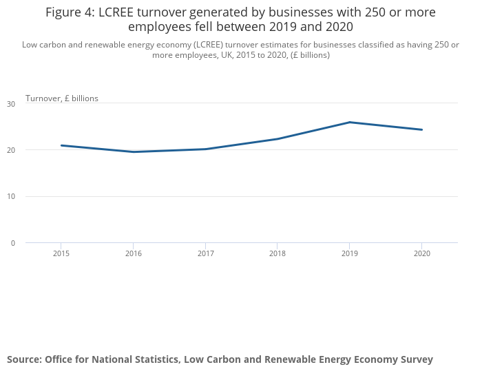 Figure 4: LCREE turnover generated by businesses with 250 or more employees fell between 2019 and 2020