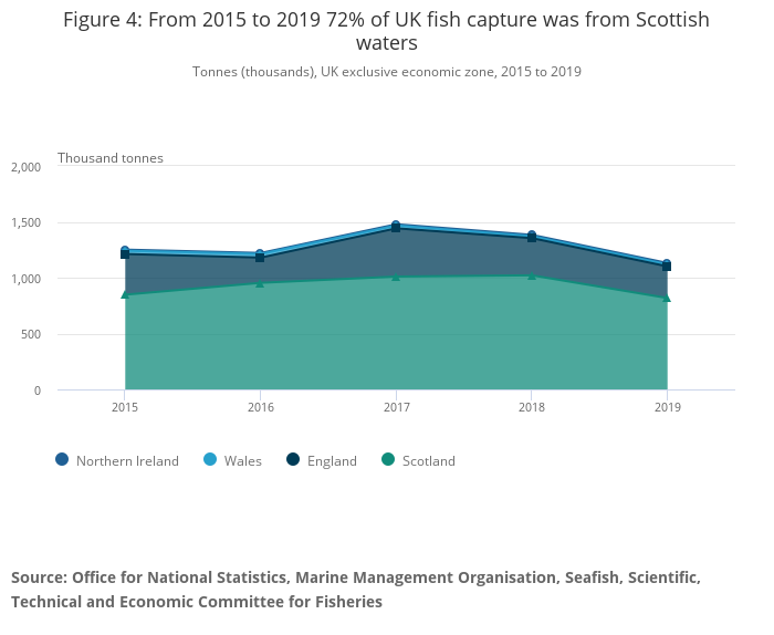 Figure 4: From 2015 to 2019 72% of UK fish capture was from Scottish waters