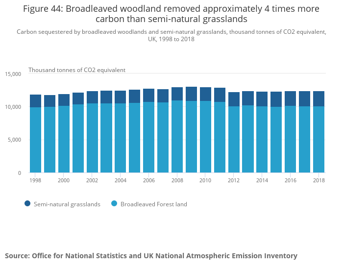 There is also an issue around woodlands. Forest Europe defined semi-natural forests are neither a plantation or undisturbed by man and display certain characteristics of the natural ecosystem. As we do not have data on the area of semi-natural woodlands in the UK, we are using the broadleaved woodland land cover category as a proxy.