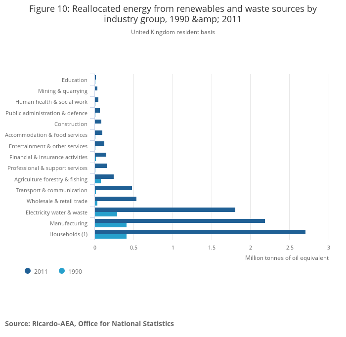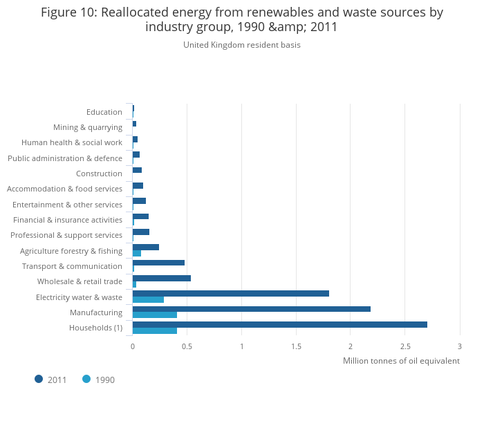 Energy consumption from biofuels has increased from zero in 1990 to 1.9 Mtoe in 2011, and now contributes similar levels to energy consumption as other renewable sources