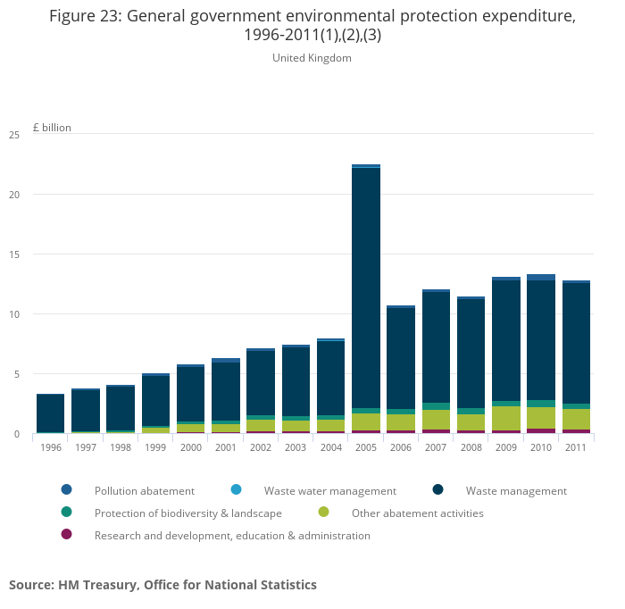Figure 23: General government environmental protection expenditure, 1996-2011(1),(2),(3)