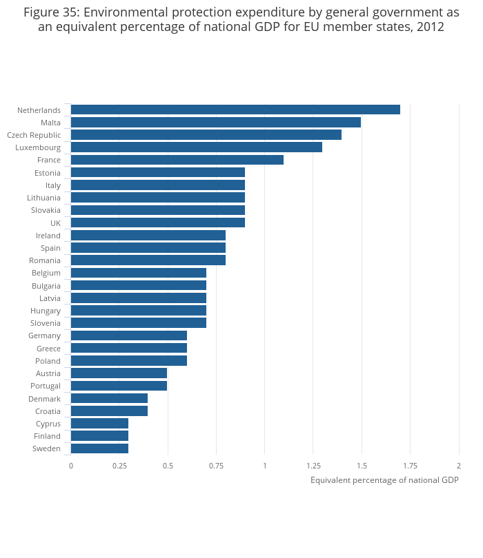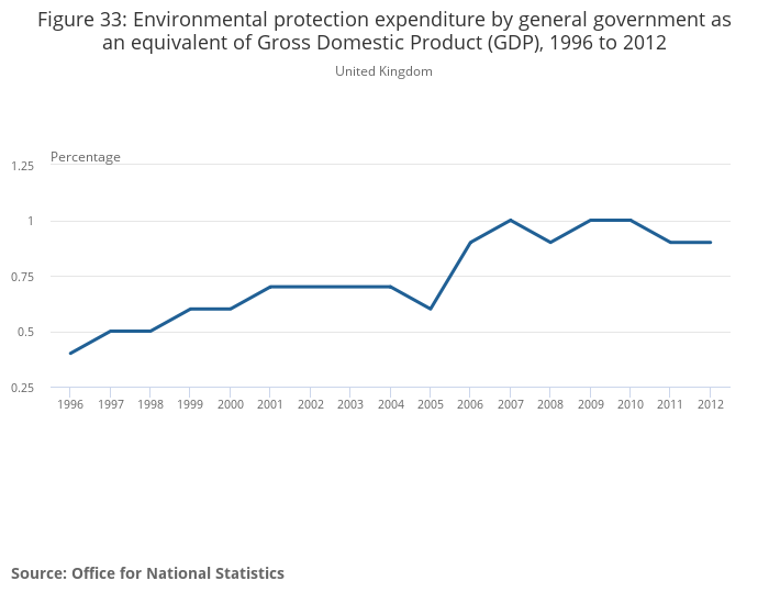 In 2012, the UK government spent £14.2 billion on environmental protection activities, of which £11.5 billion (81.3%) was spent on the collection, treatment and disposal of waste