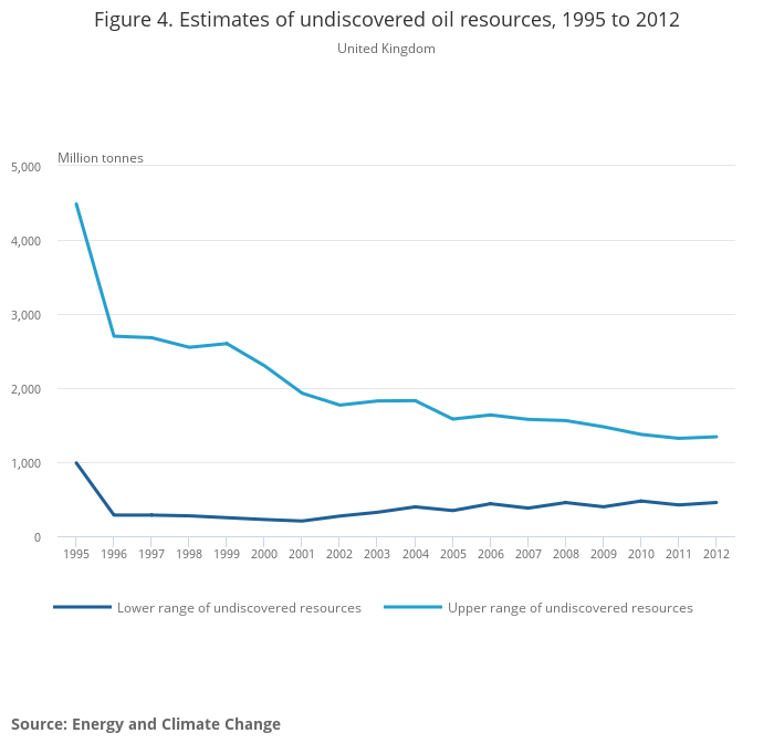 The following presents non-monetary analysis of the UK’s oil and gas discovered reserves and undiscovered resources. Discovered reserves refer to estimates of oil and gas that are expected to be technically and commercially producible. On the other hand, undiscovered resources refer to estimates of potentially recoverable oil and gas resources that have not yet been discovered.