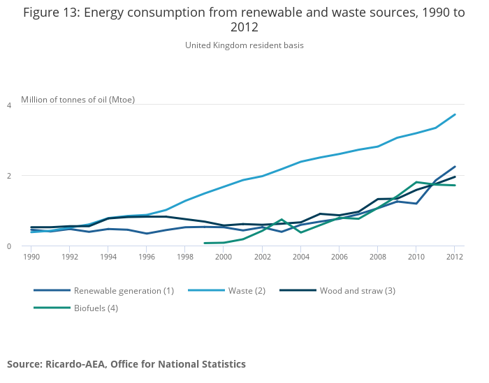 Table 5 shows the differences between estimates published in UK Environmental Accounts, 2013 and 2014.