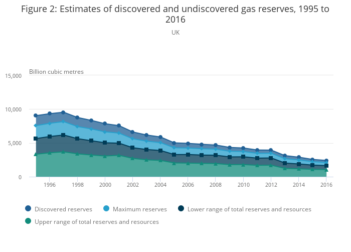 From 2015, the Oil and Gas Authority have developed a new category of oil and gas reserves, known as contingent resources. Contingent resources are defined as “significant discoveries where development plans are under discussion”. In the past, these would have been included as “probable reserves”. The apparent loss in discovered reserves is due largely to this change in classification.