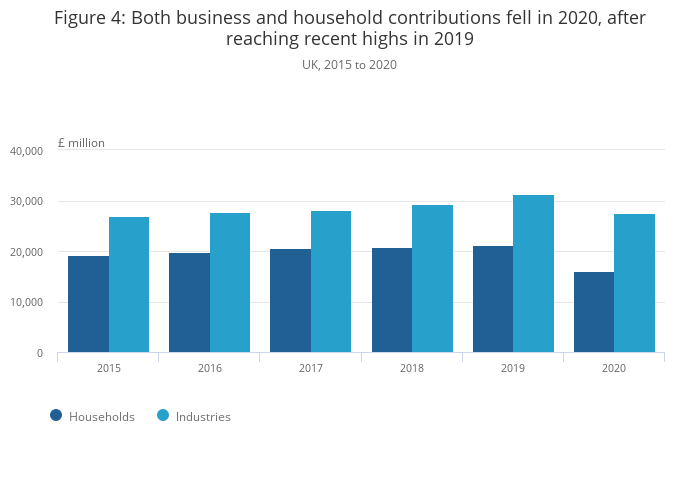 Figure 4: Both business and household contributions fell in 2020, after reaching recent highs in 2019