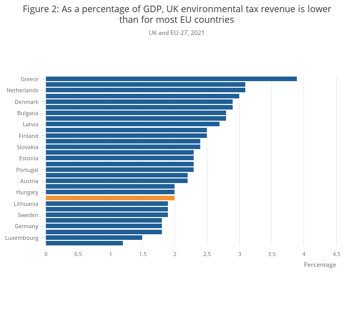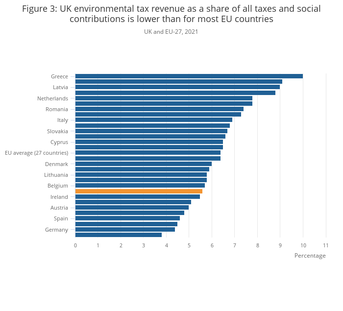 Source: Environmental taxes from the Office for National Statistics and Eurostat