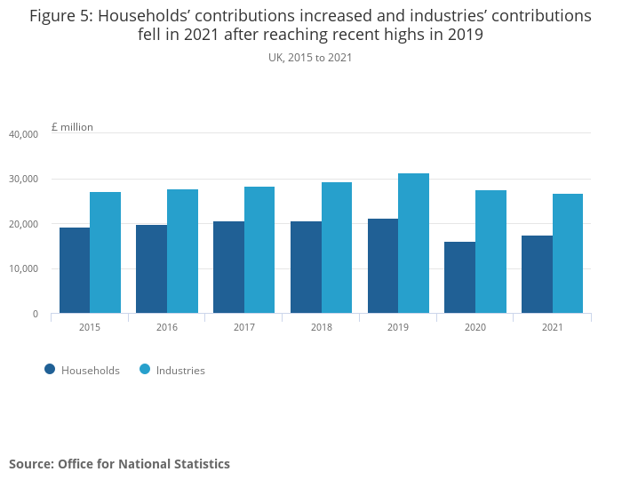 Figure 5: Households’ contributions increased and industries’ contributions fell in 2021 after reaching recent highs in 2019