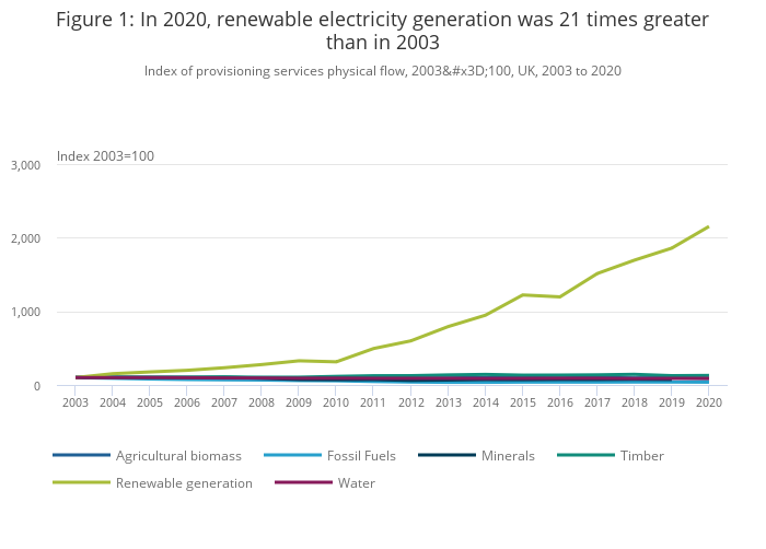 Figure 1: In 2020, renewable electricity generation was 21 times greater than in 2003