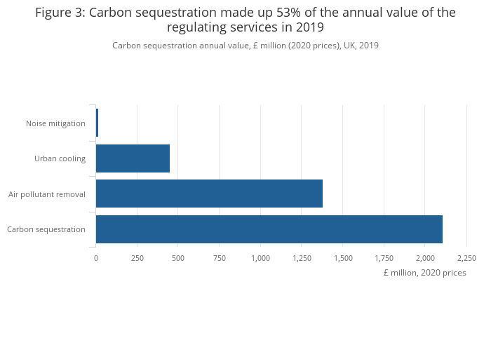 Carbon sequestration annual value, £ million (2020 prices), UK, 2019