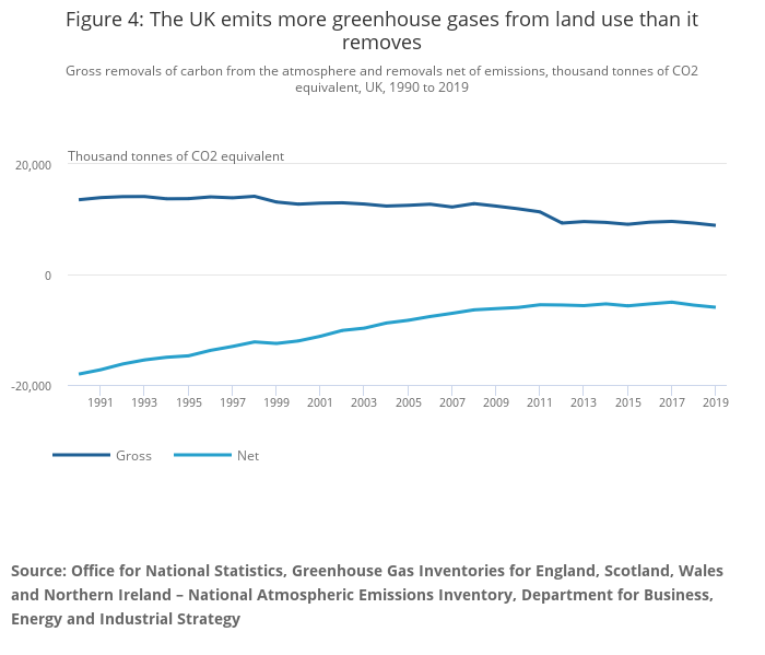 Figure 4: The UK emits more greenhouse gases from land use than it removes