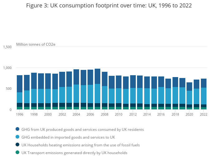 Figure 3: UK consumption footprint over time: UK, 1996 to 2022