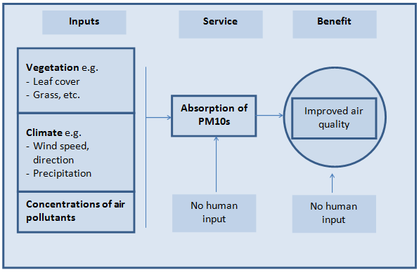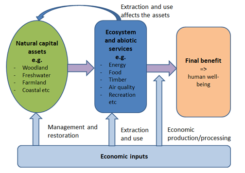 In contrast, the services that are provided by natural assets are regarded as “flows”, in the same way that the services from the economy to final users are recorded as the sum of the flows over a certain time period (normally a year). As with services provided by the economy, this may not involve any physical transfer of materials.
