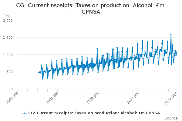 Download this time seriesCG: Current receipts: Taxes on production: Alcohol: £m CPNSA