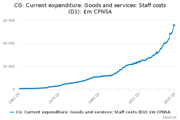 Download this time seriesCG: Current expenditure: Goods and services: Staff costs (D1): £m CPNSA