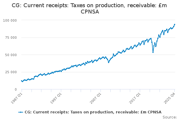 Download this time seriesCG: Current receipts: Taxes on production, receivable: £m CPNSA