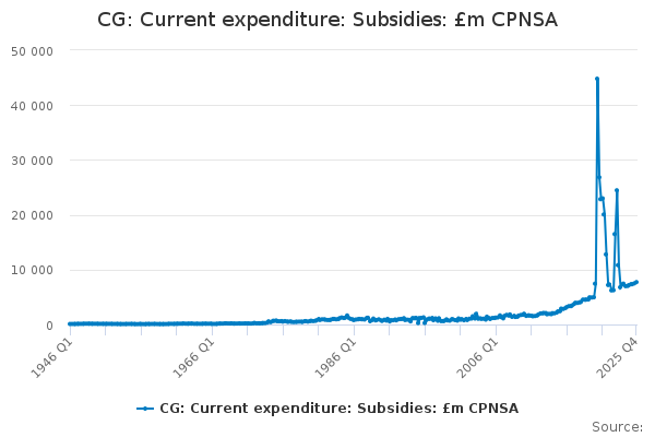 Download this time seriesCG: Current expenditure: Subsidies: £m CPNSA