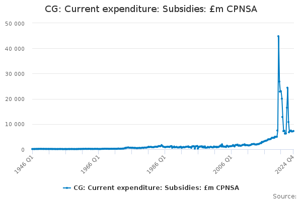 Download this time seriesCG: Current expenditure: Subsidies: £m CPNSA