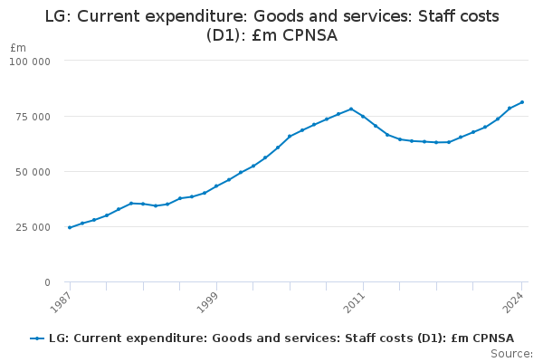 Download this time seriesLG: Current expenditure: Goods and services: Staff costs (D1): £m CPNSA