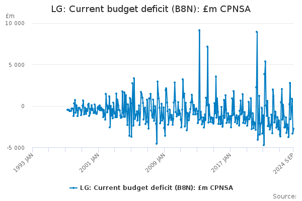 Download this time seriesLG: Current budget deficit (B8N): £m CPNSA