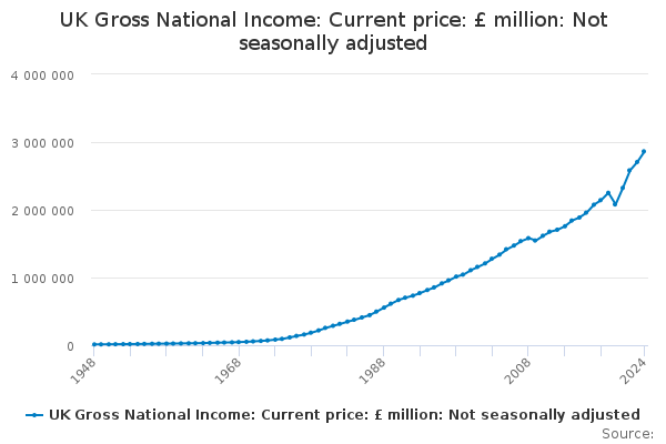 Download this time seriesUK Gross National Income: Current price: £ million: Not seasonally adjusted