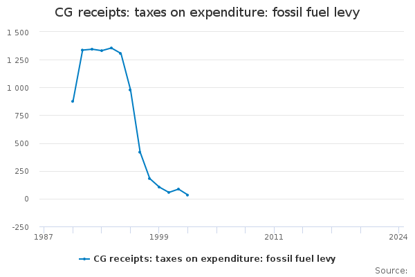 Download this time seriesCG receipts: taxes on expenditure: fossil fuel levy