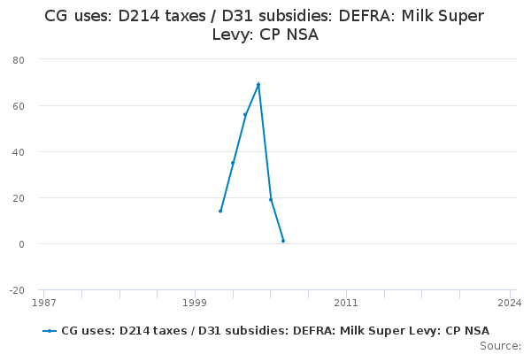 Download this time seriesCG uses: D214 taxes / D31 subsidies: DEFRA: Milk Super Levy: CP NSA