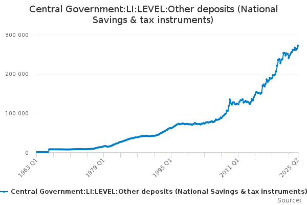 Download this time seriesCentral Government:LI:LEVEL:Other deposits (National Savings & tax instruments)