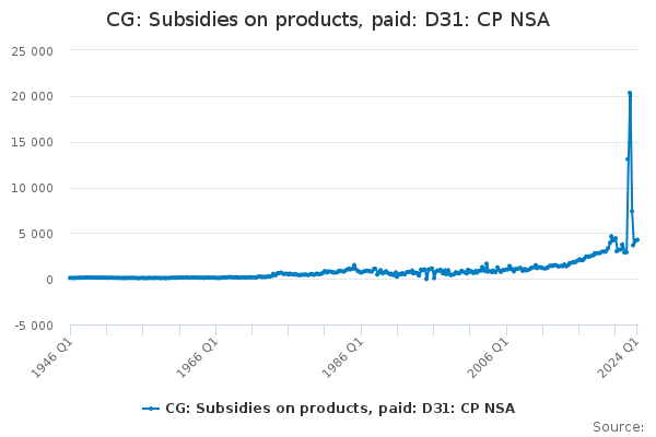 Download this time seriesCG: Subsidies on products, paid: D31: CP NSA