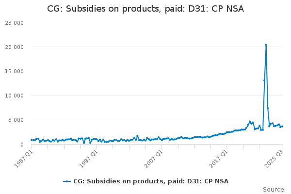 Download this time seriesCG: Subsidies on products, paid: D31: CP NSA