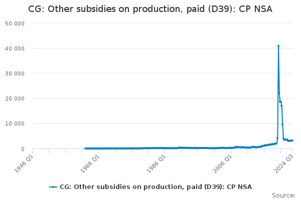 Download this time seriesCG: Other subsidies on production, paid (D39): CP NSA