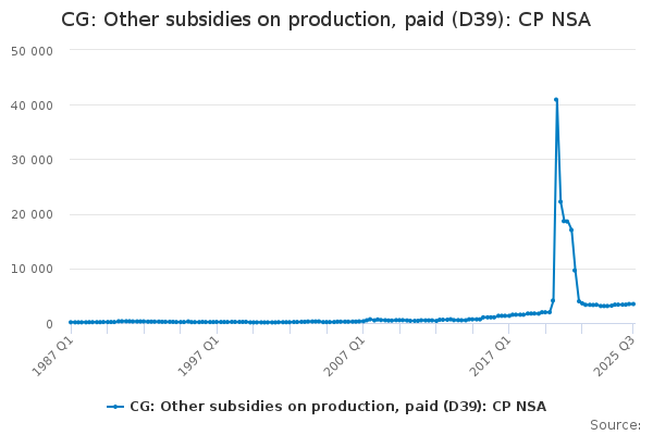 Download this time seriesCG: Other subsidies on production, paid (D39): CP NSA