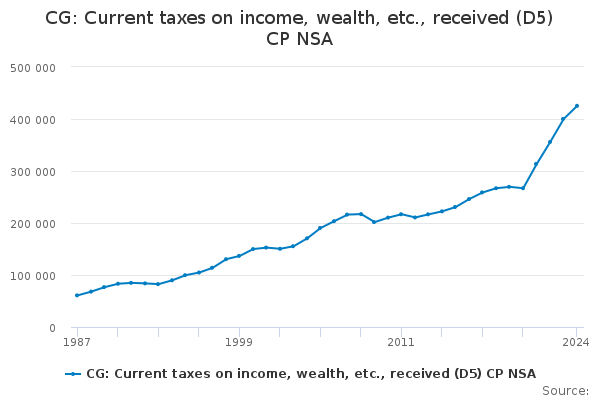 Download this time seriesCG: Current taxes on income, wealth, etc., received (D5) CP NSA
